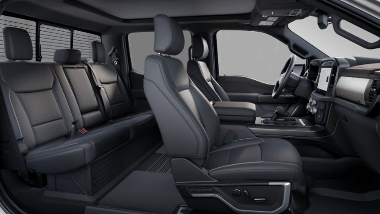Lariat Black Appearance Package: Black Grille; ActiveX Trimmed Bucket Seats; Black Exterior Badging; Gray Box Side Decal; Body-Color Front and Rear Bumpers; Body-Color Skull Caps and Door Handles; Black Taillamp Bezels; Matte Black Tailgate F-150 Decal; Dark Interior Appliques. FX4 Off-Road Package: Tray Style Floor Liner Without Carpet Mats; Off-Road Tuned Front Shock Absorbers; Skid Plates; Monotube Rear Shocks; Rock Crawl Mode; 4x4 FX4 Off-Road Bodyside Decal; Hill Descent Control. Bed Utility Package: 4 Pickup Box Tie-Down Plates; 6" Extended Running Boards; LED Box Lighting; Pro Access Tailgate; Power Tailgate. Equipment Group 502A High: Ambient Lighting - Ice Blue Color Only; Electronic 10-Speed Automatic Transmission; 7. 100 lbs Payload Package GVWR; B&O Unleashed Sound System by Bang & Olufsen Radio; 2nd Row Heated Seats; 6" Extended Angular Bright Anodized Step Bar; Power-Sliding Rear Window; Heads-Up Display; Illuminated Driver and Passenger Visors; 275/60R20 All-Terrain Tires. Mobile Office Package: Wireless Charging; Partitioned Lockable Rear Storage; Console Worksurface. Tow/haul Package: Integrated Trailer Brake Controller. Twin Panel Moonroof. BlueCruise Equipped (1year Plan). Max Tow Electronic Locking with 3.55 Axle Ratio. Space White Metallic. Skid Plates. **Equipment listed is based on original vehicle build and subject to change. Please confirm the accuracy of the included equipment by calling the dealer prior to purchase.**
