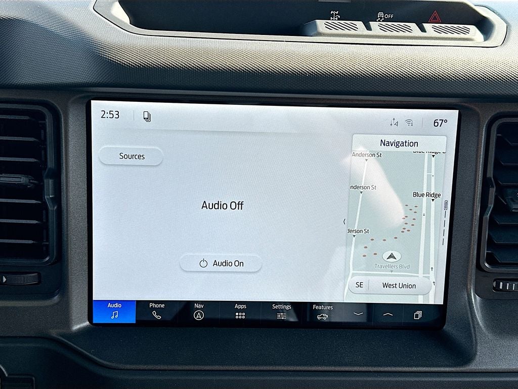 An off-road package is equipped on the vehicle. Heated seats for those cold winter days are included in this Ford Bronco. The rear parking assist technology on this model will put you at ease when reversing. The system alerts you as you get closer to an obstruction. This unit's Cross-Traffic Alert: Safeguarding you from unexpected traffic when reversing. Never get into a cold vehicle again with the remote start feature on this 2026 Ford Bronco . Protect this 2026 Ford Bronco from unwanted accidents with a cutting edge backup camera system. This vehicle keeps you comfortable with Auto Climate. This model comes equipped with Android Auto for seamless smartphone integration on the road. The installed navigation system will keep you on the right path. This model features a hands-free Bluetooth® phone system. This vehicle offers Apple CarPlay for seamless connectivity. Maintaining a stable interior temperature in this 2026 Ford Bronco is easy with the climate control system.