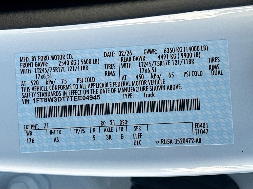 Never get into a cold vehicle again with the remote start feature on this Ford F-350. See what's behind you with the back up camera on this vehicle. The Ford F-350 shines with clean polished lines coated with an elegant white finish. This 2026 Ford F-350 Super Duty has a V8, 6.7L high output engine. Maintaining a stable interior temperature in the Ford F-350 is easy with the climate control system. This Ford F-350 is outfitted with a Powerstroke diesel engine A trailer braking system is already installed on the Ford F-350. This 1 ton pickup has four wheel drive capabilities. With a diesel engine you will be pleased with the power, torque, and fuel efficiency gains. Electronic Stability Control is one of many advanced safety features on the vehicle. This vehicle has dual wheels for expanded hauling options. This model has fog lights for all weather conditions. This 1 ton pickup has an automatic transmission.