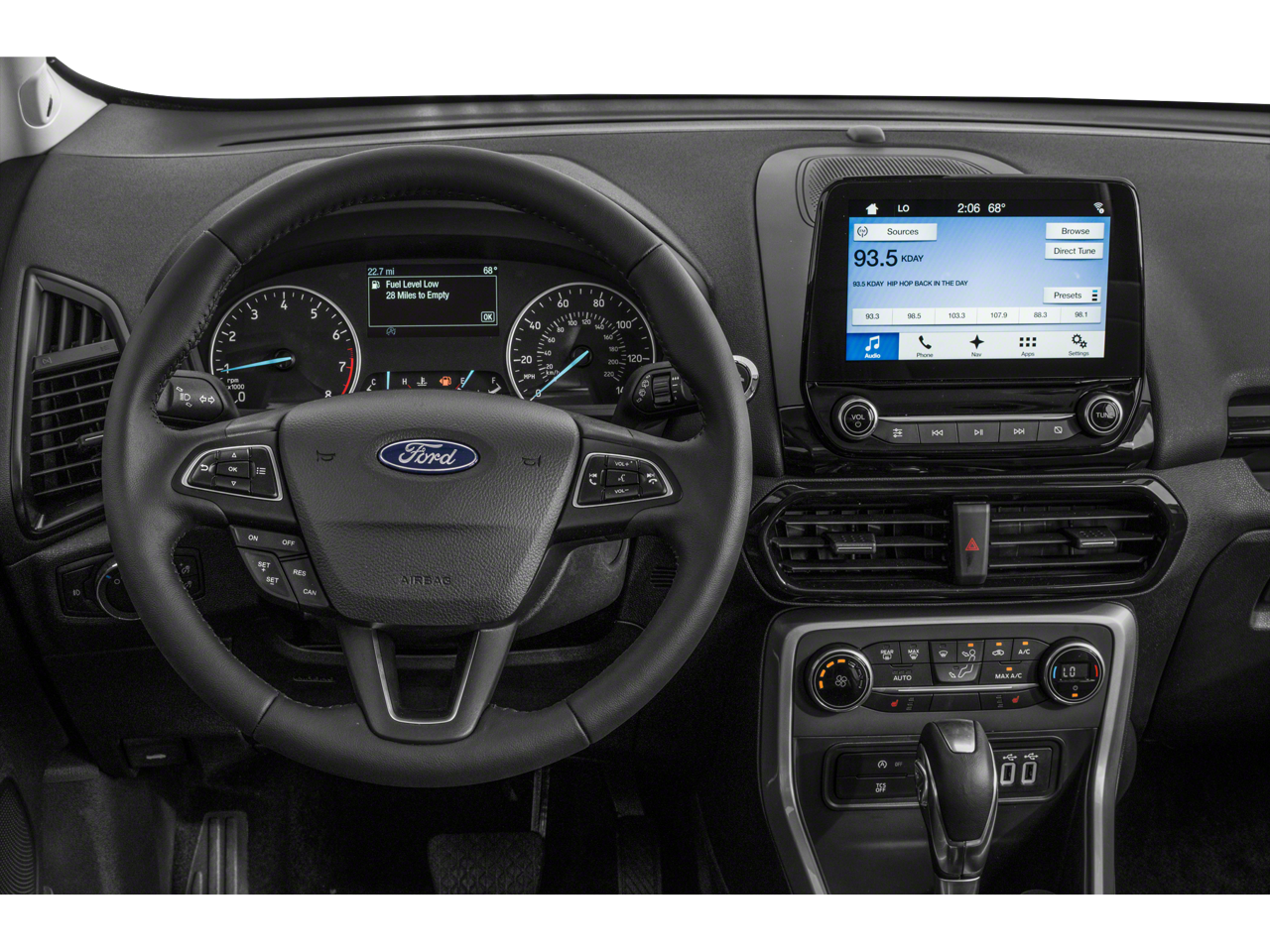 with XM/Sirus Satellite Radio you are no longer restricted by poor quality local radio stations while driving this small suv. Anywhere on the planet, you will have hundreds of digital stations to choose from. The installed navigation system will keep you on the right path. Never get into a cold vehicle again with the remote start feature on it. The leather seats in this vehicle are a must for buyers looking for comfort, durability, and style. This unit has a clean CARFAX vehicle history report. This Ford Ecosport offers Automatic Climate Control for personalized comfort. This unit features a hands-free Bluetooth® phone system. Keep your hands warm all winter with a heated steering wheel in it . The rear parking assist technology on this model will put you at ease when reversing. The system alerts you as you get closer to an obstruction. See what's behind you with the back up camera on the vehicle.