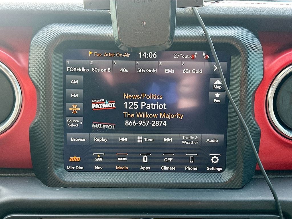 Cold Weather Group: Remote Start System; Heated Front Seats; Heated Steering Wheel. Safety Group: Blind Spot and Cross Path Detection; ParkSense Rear Park Assist System. LED Lighting Group: Daytime Running Lamps LED Accents; Front LED Fog Lamps; LED Premium Reflector Headlamps; LED Taillamps; LED Park Turn Lamps. Quick Order Package 24R. Trailer Tow Package: Heavy Duty Engine Cooling; Trailer Hitch Zoom; Class IV Hitch Receiver; 240 Amp Alternator. 8.4" Radio and Premium Audio Group: SiriusXM Traffic Plus; Alpine Premium Audio System; HD Radio; Uconnect 4C Navigation Radio with 8.4" Display; Rear View Auto Dim Mirror; For Details. Visit DriveUconnect.com; 1-Year SiriusXM Guardian Trial; 5-Year SiriusXM Travel Link Service; GPS Navigation; 5-Year SiriusXM Traffic Service; SiriusXM Travel Link; Emergency/assistance Call; 8.4" Touchscreen Display. Dual Top Group: Premium Sunrider Black Soft Top; Black 3-Piece Hard Top. Auxiliary Switch Group: 700 Amp Maintenance Free Battery; Auxiliary Switches; 240 Amp Alternator. Trail Rail Management System: Lockable Rear Underseat Storage; Exterior 115V AC Outlet; 240 Amp Alternator. Leather Trimmed Bucket Seats. Black 3-Piece Hard Top. Alpine Premium Audio System. MOPAR Hard Tri-Fold Tonneau Cover. Steel Front Bumper. 2-Piece Body Color Fender Flares. Remote Proximity Keyless Entry. Remote Start System. MOPAR Spray in Bedliner. Snazzberry Pearlcoat. MOPAR All-Weather Floor Mats. **Equipment listed is based on original vehicle build and subject to change. Please confirm the accuracy of the included equipment by calling the dealer prior to purchase.**