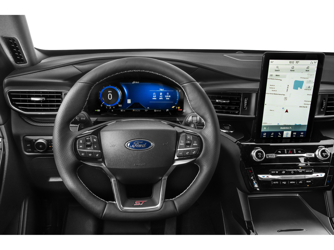 Technology Package: 2 Additional Speakers; 10.1" LCD Capacitive Portrait Touchscreen. Equipment Group 401A: 3.58 Non-Limited-slip Rear Axle Ratio; Engine: 3.0L EcoBoost V6; 10-Speed Automatic Transmission; 6. 160 lbs GVWR. ST High Package: Memory Driver's Seat; Power Tilt/telescoping Steering Column; Front Rain-Sensing Wipers; Power Liftgate; Reverse Brake Assist; 360-Degree Camera with Split View; Wireless Charging Pad; 110V/150W AC Power Outlet; B&O Sound System by Bang and Olufsen; Sideview Mirrors with Gloss Black Caps; Universal Garage Door Opener (UGDO); Auto-Dimming Rearview Mirror (interior); Front Parking Sensors; Second Row Heated Seats; Third Row PowerFold (folds Flat). ST Street Pack: Performance Front and Rear Brakes; 21" Aluminum Wheels. Ford Co-Pilot360 Assist+: Speed Sign Recognition; Voice-Activated Touchscreen Navigation System; Evasive Steering Assist; Intelligent Adaptive Cruise Control. Twin Panel Moonroof. Wheel Lock Kit. **Equipment listed is based on original vehicle build and subject to change. Please confirm the accuracy of the included equipment by calling the dealer prior to purchase.**